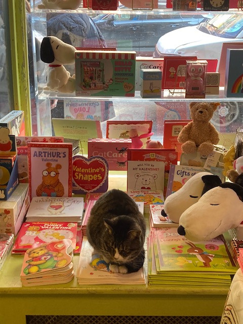 Several shelves of vintage books of all sorts are along one wall but maddeningly high and virtually out of reach. A few attempts did show them to be extremely pricey so we gave up on much trying. Algonquin Cat with illustrations by Hilary Knight of Eloise fame piqued my interest although it was in a locked cabinet, so I didn’t get to have a look. I do see that recent reprints of it are very affordable. I suspect this was an earlier edition. I may take a flyer on it out of curiosity, even not having seen it. I do not need a first edition.