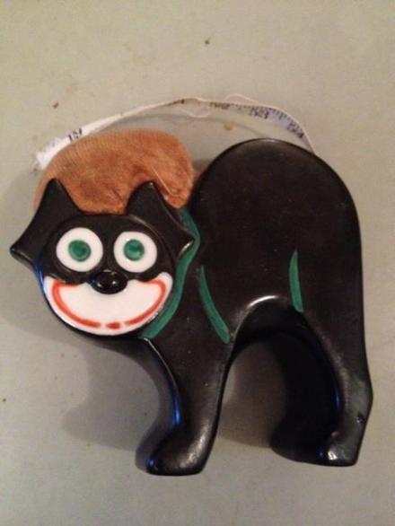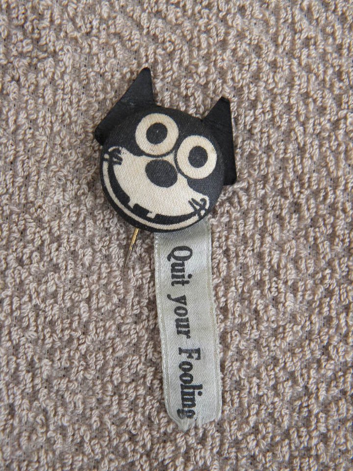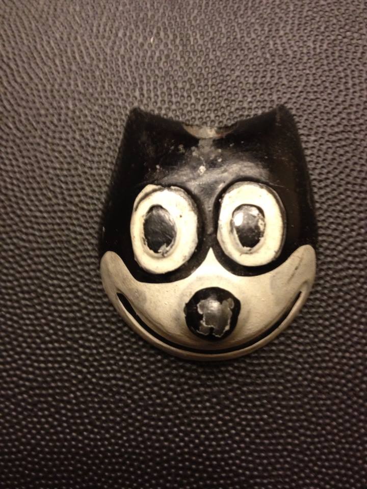 Pam’s Pictorama Toy Post: Let’s start with some disclosure – the Felix pin is off of eBay and in decidedly better condition than the one I own. That aside, we have some wonderful tiny items that were designed to enhance daily life in the 20’s or so. The first is a tape measure and pin cushion (a birthday gift from my rather wonderful husband) followed by a Felix pencil sharpener (Kim actually acquired this as a trade of “art for toys” for me when we visited San Francisco last year – man, what did I ever do to deserve him? I’m a lucky girl!) and last, but not least, a very nice Felix pin. The one I own (if not an outright gift from Kim. one that he contributed to – there’s a theme here) is greatly discolored compared to this one and this photo was handy. Someone recently sent a photo of a car with Felix on the grill – it was a time of ribald Felix fun! Sorry I missed it, but I’m doing my best to recreate it here in our small slice of heaven on the upper East side of Manhattan.