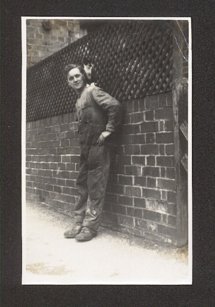 Pam’s Pictorama Photo Post: A jaunty photo of a workman and his tuxedo cat here. I have a particular soft spot for photos of men with cats – they are, in my mind, a sort of genre of their own. (Previous posts include Men and Cats and Men in Hats with Cats.) Women and children often grab cats up and hold them up next their face – look how cute our kitty is! My cats hate it when I pick them up and kiss their faces – like small kids they wriggle and wrinkle their faces in disdain and embarrassment. Oh the damaged dignity! Meanwhile, men tend to give them some space. The cat is held respectfully, stands with them or in front of them – or as in this case, on his shoulder. Very nice!