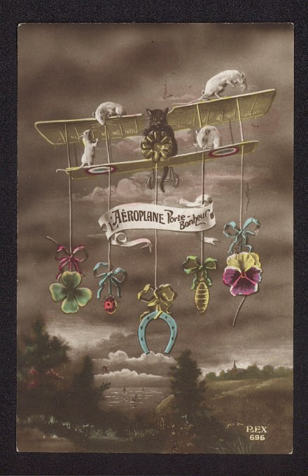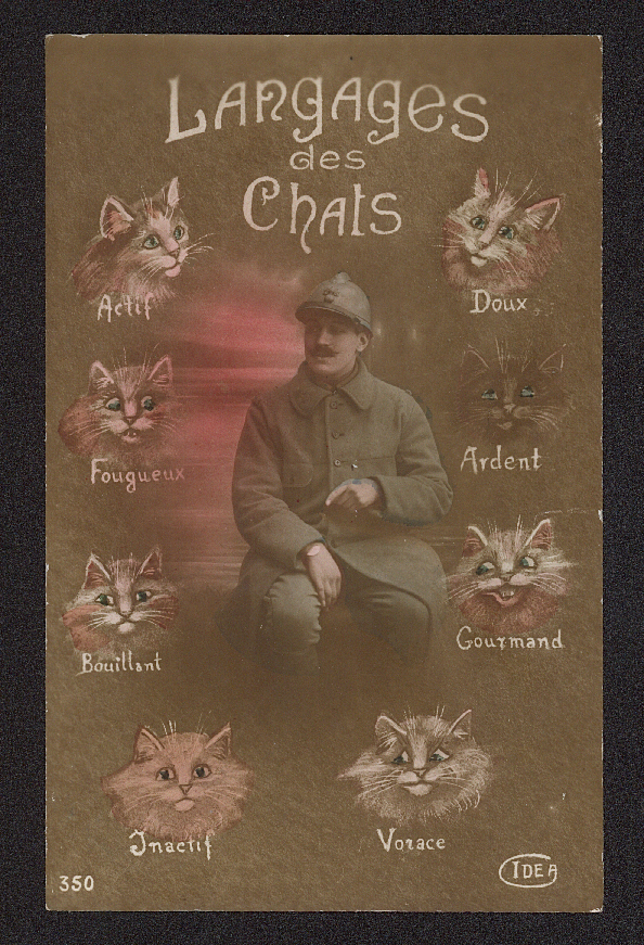This card belongs to the same family as the one featured in Speaking of Cats which I show here below. These seem to be WWI genre cards – different companies, Rex 696 and the one below by Idea.