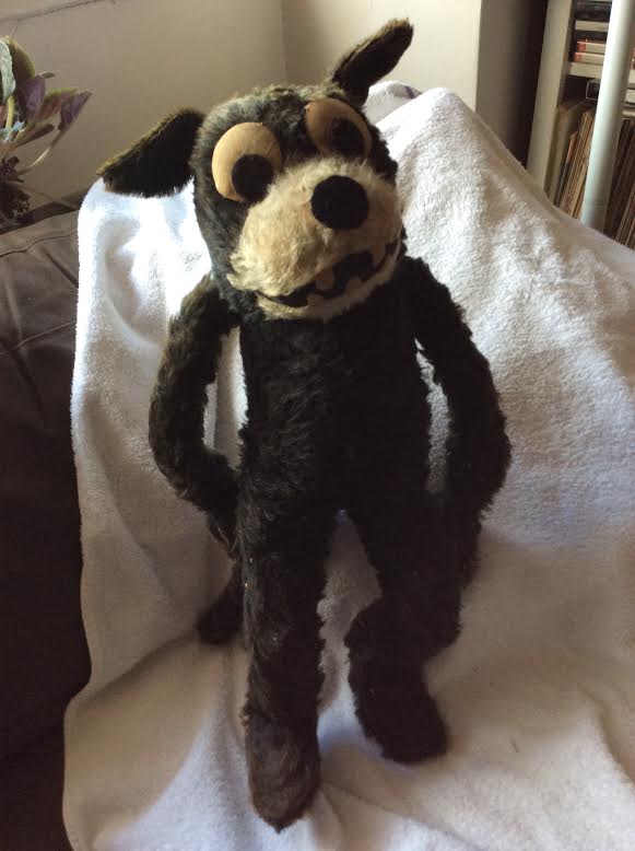 Pam’s Pictorama Toy Post: I really wasn’t in the market for another Felix, especially not such a large one. Finding a spot for them in our tiny apartment is becoming difficult. Yet when this one failed to sell and was re-listed at a much lower purchase price, I could not ignore the opportunity to purchase it. At the time I was thinking that it was an upgrade for one in my collection, but when it showed up I realized that it is actually a different model. Just as well, I have not yet begun to see myself in the role of seller – I am still accumulating. I gather from the eBay seller that she bought it on a recent Morphy’s auction for considerably more (I do remember it being listed there) and she didn’t have room for it once it arrived!