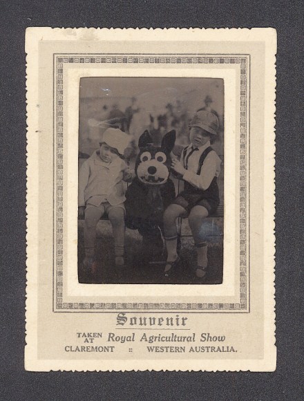 Pam’s Pictorama Photo Post: I am ready to get back to the important work of discussing Felix photographs in order to kick this year off properly. This excellent example enters my small and (I tend to think) rarified collection of tintypes of folks posing with Felix. Some of those were made in Britain, but Australia seems to be the prime locale for them. I own two tintypes from Katoomba (the site of some gorgeous waterfalls located in a park in New South Wales) and two identified as being from the British [Empire] Exposition, one from 1924 and one from 1925, the best of which I memorialized in Little Gem – then several more tintypes which do not declare their place of origin. I have written about one of the Katoomba ones previously in a post which can be found here at Felix Featured on Tin. This one obviously hails from the Royal Agricultural Show Claremont, Western Australia which I gather is still an annual event there.