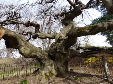 This behemoth was evidently planted back in 1872, a gift to the park from a Mr. A. Burgess, a florist from Brooklyn. The Camperdown Elm was discovered in Scotland less than 30 years before our Brooklyn tree was planted. It was discovered by the Earl of Camperdown who then reproduced it through cuttings. (This tree is only reproduced through grafting – it does not reproduce by seed.) The Brooklyn Elm was celebrated in the poem by Pulitzer Prize winning poet, Marianne Moore, written in 1967 and published in The New Yorker. The publication of The Camperdown Elm was said to have rescued the tree at a time when a financial commitment was needed and the park was also in both disrepair and financial straits. The tree whose innate, quirky persistent desire to grow horizontally – like a giant bonsai of its own making – requires propping in places as gravity fights back, especially in one so old and clearly needs a certain amount of care and attention to survive.