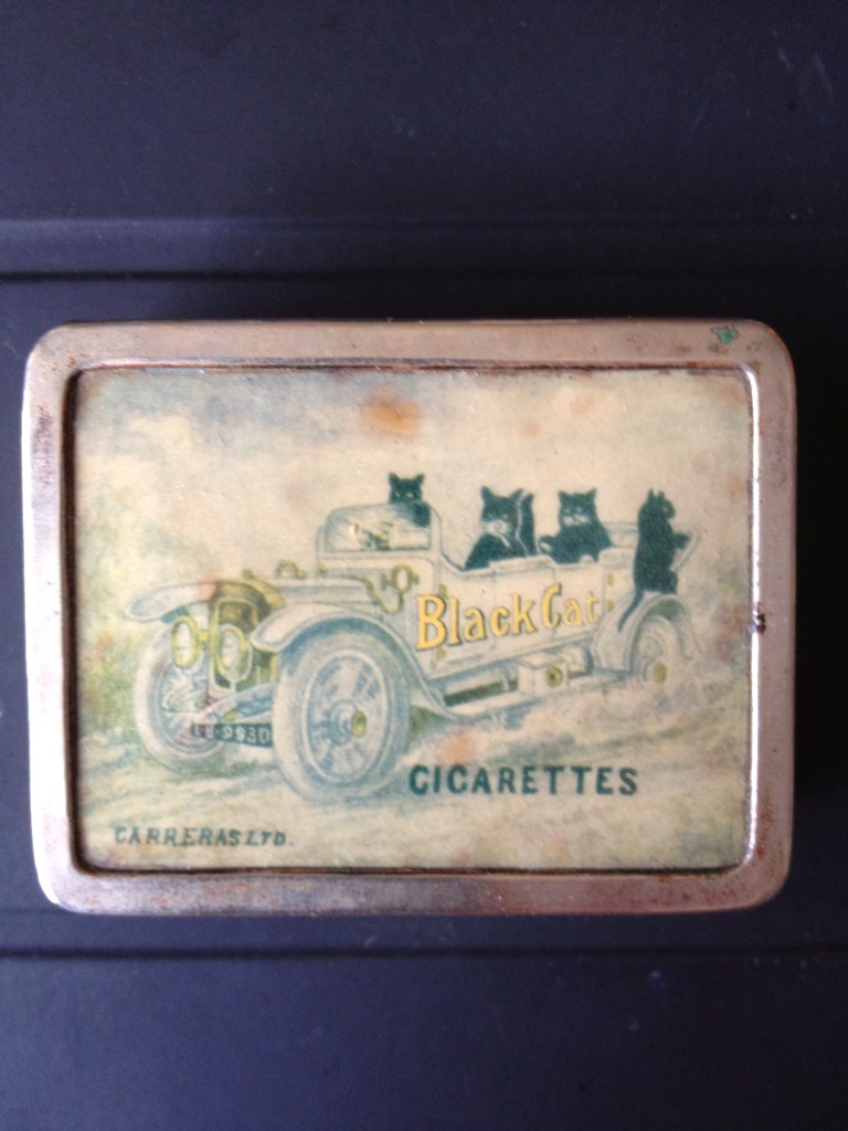 Matches played a bigger role in the world in early 20th century life than we may remember today, living now in a world of lighters and probably less of a need for them in general with less cigarette smoking and all. Among my prized possessions are two feline versions of what are known as “match safes” – these designed for keeping your matches dry and handy – and, in a word, safe. I have written posts on those two here and here. (Meanwhile, if you want to be entertained by the story of matches I suggest the 1932 pre-code film The Match King, based on a true story, which takes on the premise of getting rich, one match via manipulation and a monopoly on the match market.)