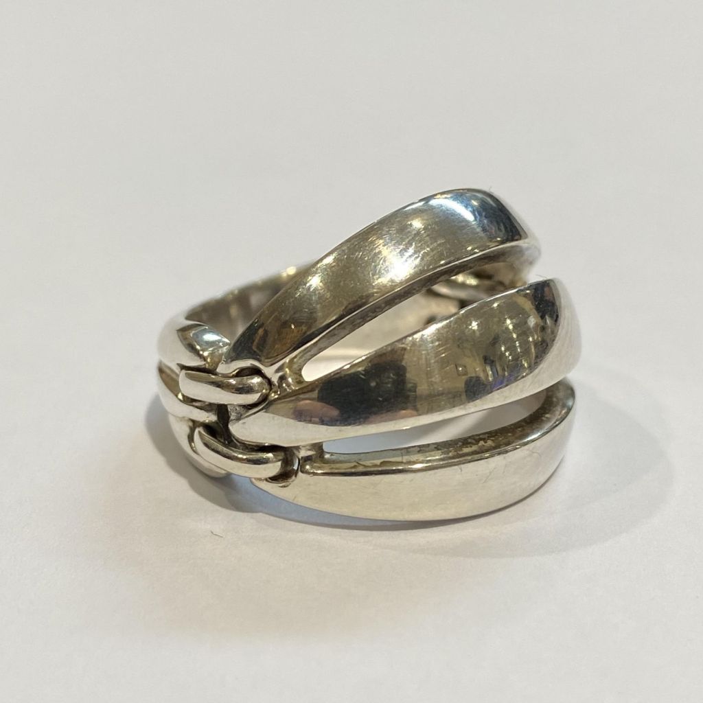 The Jensen ring is a beauty and the craftsmanship and design are undeniably wonderful. Madame Brocante informed me that it was designed by Regitze Overgaard, maybe in the 1980’s, for George Jensen and is known as the Melon ring. Madame B’s example is way too small for my hands as it turns out – the ones available all run small – do Danes have tiny hands? Examples are available on the internet and it is tempting if the right size can be found. There would be no adjusting this design.