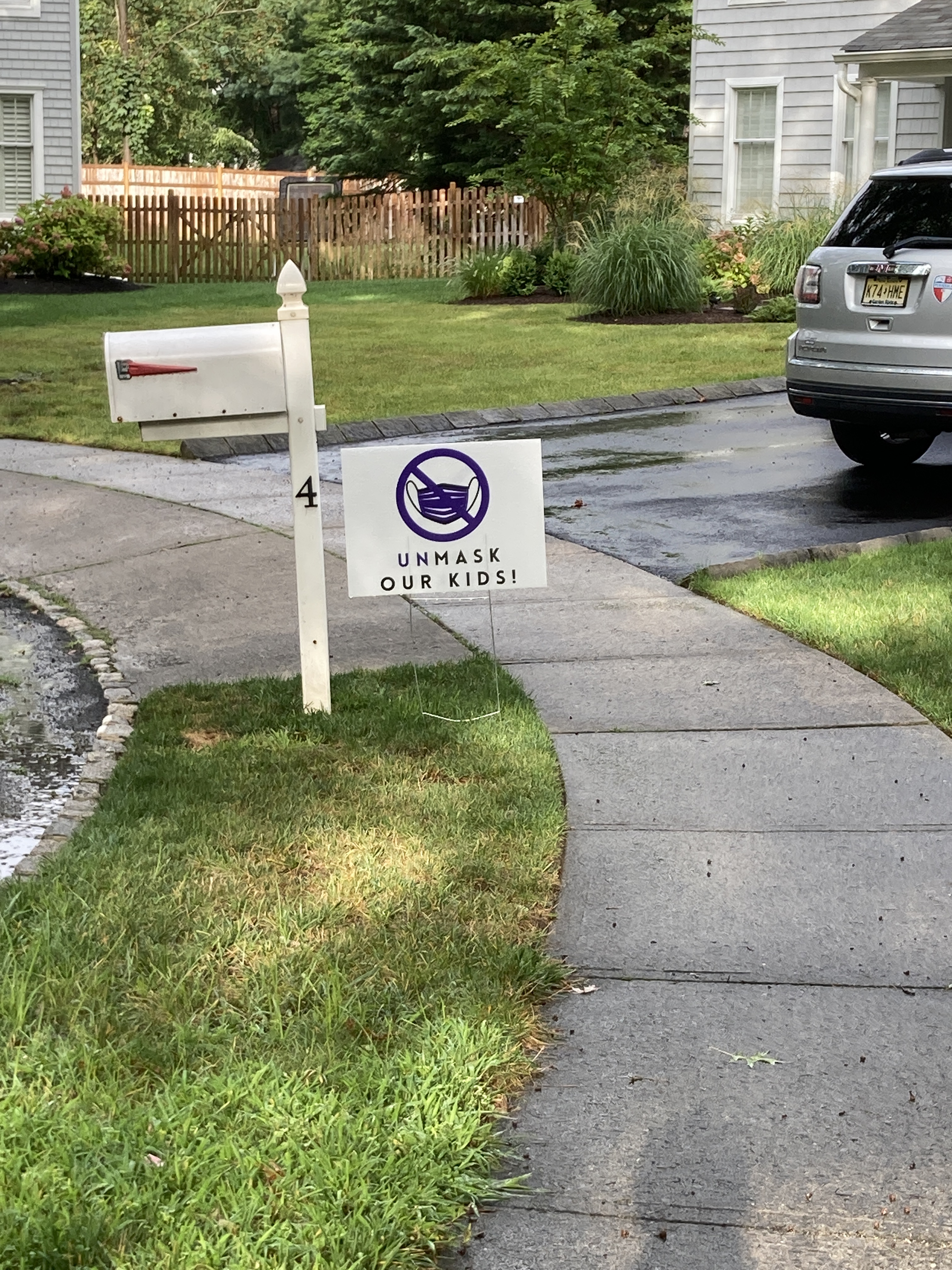There are a number of cul de sac dead ends where basketball hoops proliferate and kids clearly command the streets. Several homes sported unmask our kids signs which reminded me that it had always been a community that wore its politics on its sleeve with yard signs favoring political candidates, making statements. Maybe all suburbs are – it is the only suburban community I have ever lived in so I am unsure.