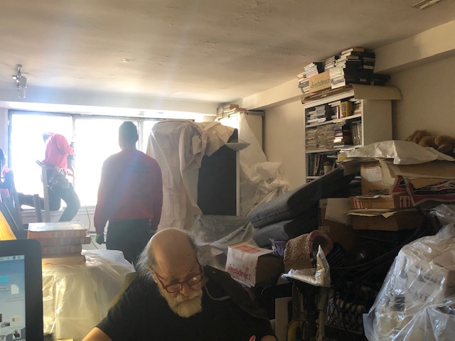 Kim moved in here part-time shortly after and then the rest of the way not long after. It has been painted once, patched innumerable times and for a variety of reasons which include, but are not limited to repiping the entire building and replacing the windows (see that post here) we have packed up on several occasions to make room for repairs. We have a history of leaks as well – a problem which seems endemic to residing on the top floor which we do here at Deitch Studio.