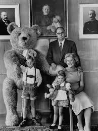 This card fits neatly into my collection of postcards posing with the giant stuffed black cat – sometimes astride him, other times beside as here. However, this has the significant bonus feature of the heretofore not seen enormous Steiff-like teddy bear! In my mind this leads to the question – did Steiff perhaps actually produce both the giant black cat and the bear? A quick internet search does not immediately turn up more of these outsized bear pics as I suddenly wondered if I had just been missing them. The giant cat chairs are more prevalent. (My previous posts featuring my collection of these cards can be found here and here for starters.) This leads as always to the question I ask – where have all the giant toys people posed with gone? Still I stalk the big kitties!
