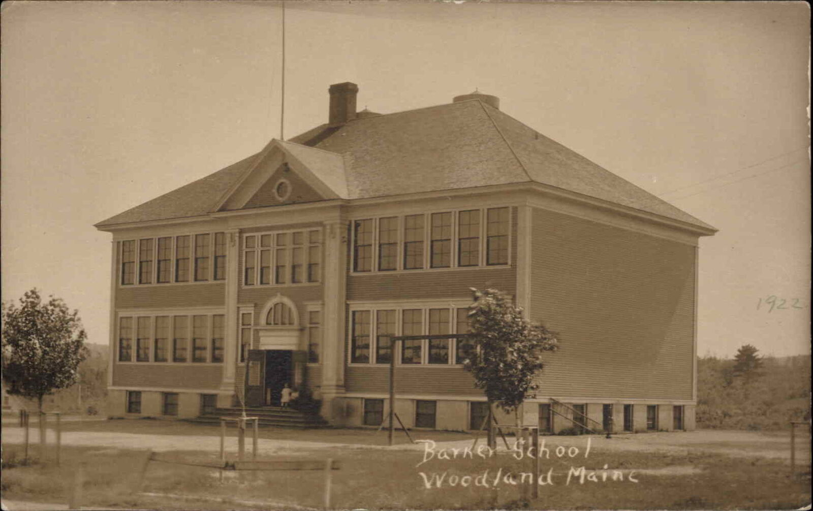 Below I share a more or less contemporaneous photo (via a photo postcard) of the Barker School. I cannot seem to confirm if it exists today or not. It may have been renamed.