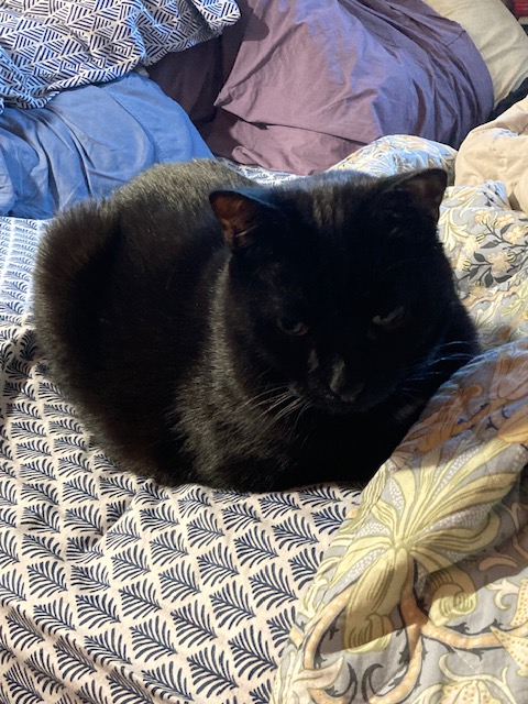 I returned to New York Friday evening. Blackie has resumed eating more regularly but still requiring a stimulant and some encouragement. Essentially we are now in a stage where he’ll eat really good stuff but is still turning his nose up at the healthier real food we expect him to eat. However, he just wolfed down a smidge of smoked salmon so I would say his eating instincts are not totally disabled.