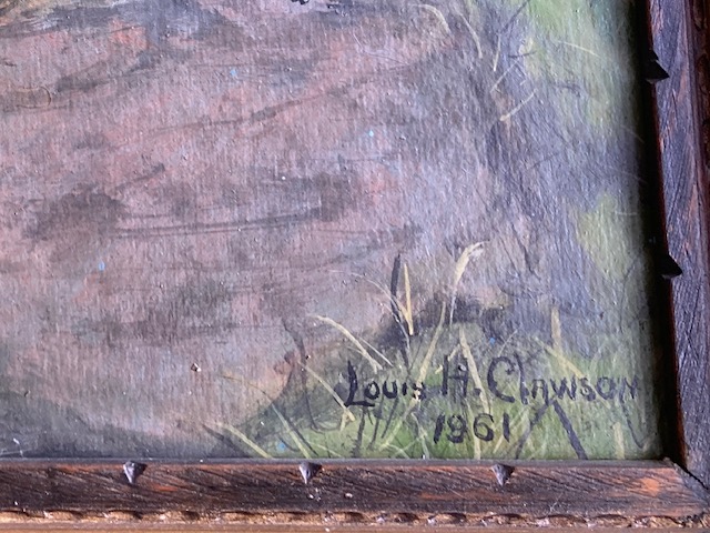 It is signed by the artist, Louis H. Clawson, and datde 1961. A quick internet search brought him up the other day, but now the results are a bit more brief which makes me wonder if the other was conflating him with several other artists with similar names. Not surprisingly he was a regional painter and of some note and he is lightly collected today. However, as I add tidbits to the AI search it becomes more clear that we are talking about this artist.