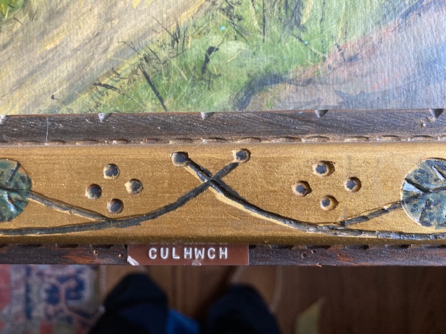 Finally, I want to draw you attention to the tiny sign at the bottom of the painting which says, Culhwch. (It looks like it was printed on a labeling machine.) This Welsh name appears to refer to a figure in Welsh mythology (Arthurian story?), whose mother was frightened by swine when pregnant with him – he is later found in a pigsty and taken to his father, no further mention of his mother and he goes on to do all sorts of things – none additionally related to pigs. It is a bit complicated for the uninitiated, even on Wikipedia. It is (sort of) pronounced Kill-hook. The swine reference is clear but interesting for him to have in mind and where did it come from I wonder.