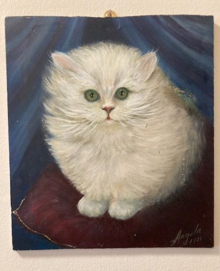 I have learned that hunt-the-slipper is a game where you pass a slipper (shoe perhaps in today’s parlance?) or small object and try to fool the person hunting about who has it. (I have finally found a good use for AI – it explained this to me.) And we are a bit appropriately huffy puffy here. We are spared too much gore for the mouse hunt with one cat discretely looking in a trap and we see only a mouse tail – although the expressions on the cats faces peering over are also pure Wain-ness with a fillip and dash of pure insanity.