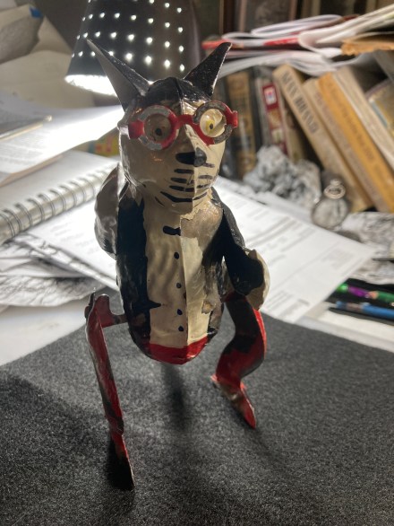 Pam’s Pictorama Post: This splendid fellow came into the house just before the en masse exodus to New Jersey in August. He was part of the haul from the British sale that brought numerous Felix treasures into the house. The items included a Felix walking statuette (that post is here) and a sort of box of Felix which included a rather extraordinary Felix hanky (post is here) and some Felix pins (which can be found here).