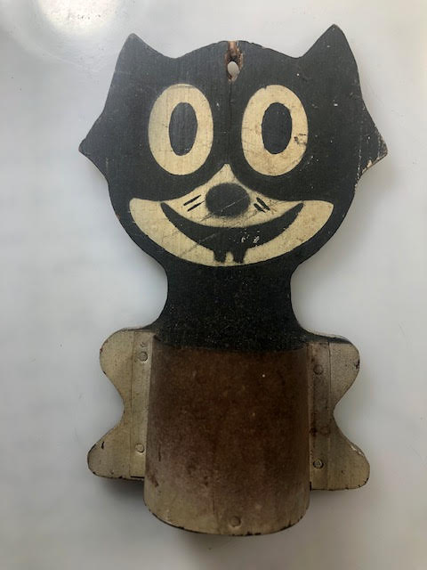 Pam’s Pictorama Post: Sometimes it is easy to forget that the purview of Pictorama is a cat one, although frequently a predominantly black cat and a Felix one. Today’s item crossed my path on Instagram, being sold by an antique store in Texas (http://www.getcuriosities.com) and whose denizens have become friends who keep an eye out for Felix-y and other cat items for me. Although Jason hadn’t lined me up for it I don’t think he was surprised when I reached out. It was inexpensive and admittedly purchased on the fly while I should have been doing other things.