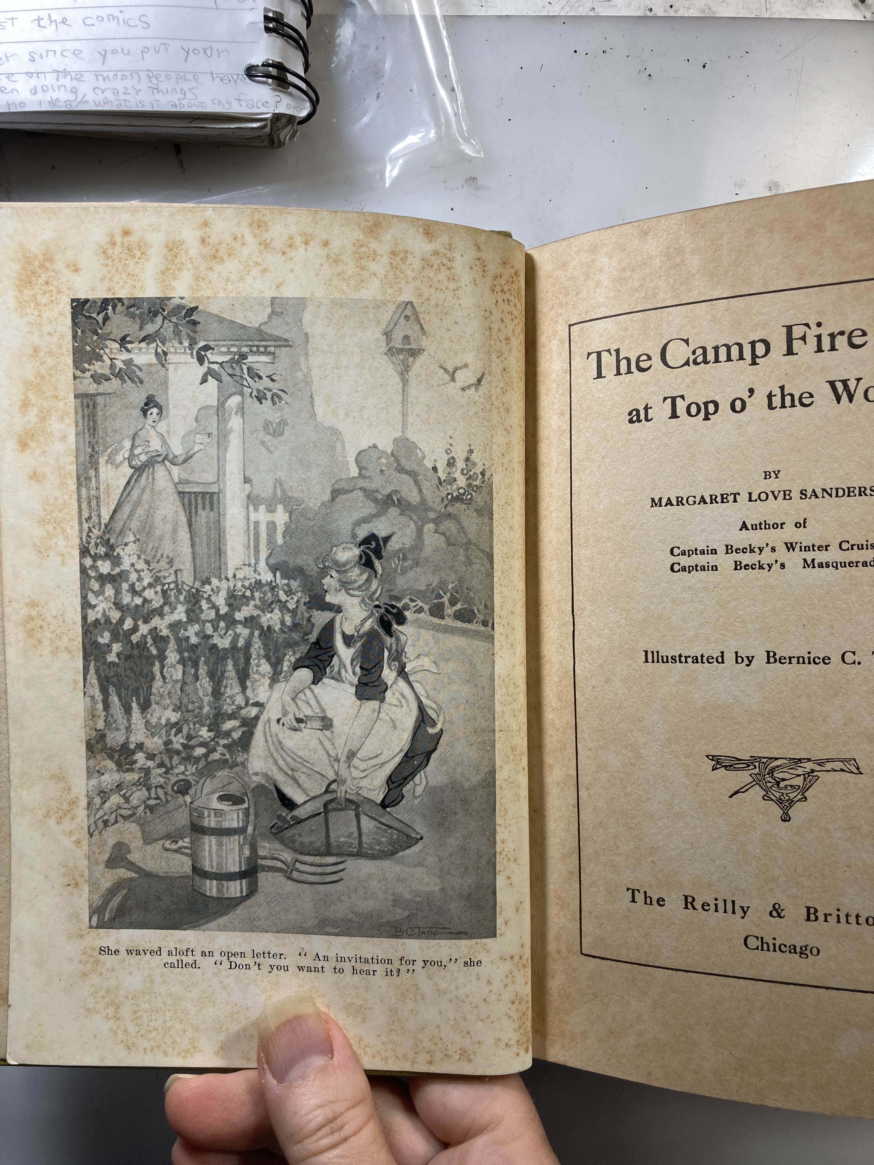 In a later volume, Twin Sisters, An Irish Tale published in 1913 she has a female character who, in charge of her late husband’s estate (it is thought of as her managing it for her son – as if she wasn’t also living off it in the meanwhile) invests aggressively in the stock market and makes but ultimately loses much of the fortune. She is criticized as having had no business trying to do the work of a man. But women like her are frequently left to their own devices and the heroine of the story arrives, along with her twin sister, in Britain from Spain as the wards of a family friend they never met. Penniless, the woman charitably agrees to help launch them into society and make agreeable marriages for them. Our girl Pipa isn’t having it though and takes work in an apple orchard in the country instead. Although she is roundly criticized for this, she is our heroine so needless to say she does the right thing – but of course she will end up with her best mate as well.