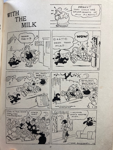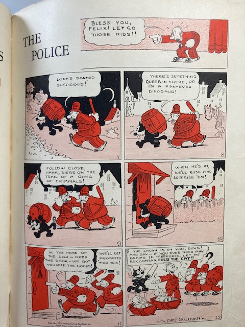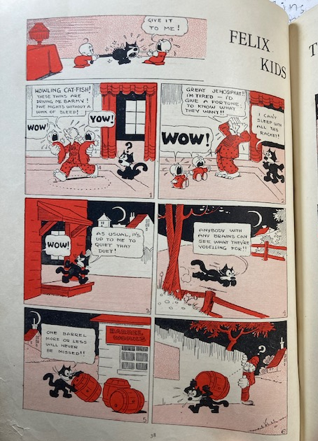The artist/s do not appear to get credit for these so I am assuming that Charley Bowers is the artist and perhaps the writer as there are no other credits for the book. On the inside cover there is a 1923 copyright and W.F. Powers Co. On the cover we see that there is a Pat. Applied For.