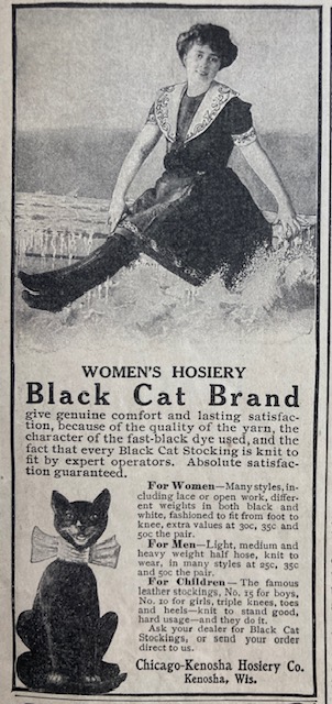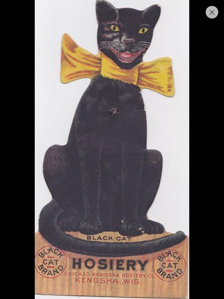 Pam’s Pictorama Post: The brilliant advertising of the Black Cat Hosiery Company, brought to us by the fine folks in Kenosha, Wisconsin, is sort of a square one for the kind of cat collecting I do. While this is only one of several pieces I have managed to acquired (you can find a post about the first one here), given the opportunity (and unlimited funds – I am not alone in my affection for it and it is generally pricey) I would collect deeply in this area and more or less surround myself with it.