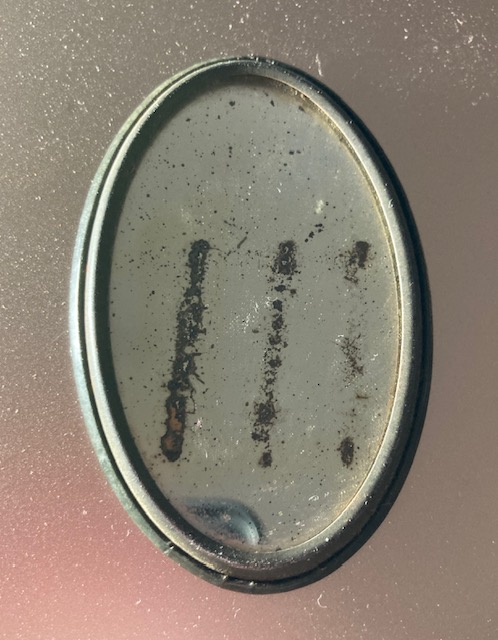 Sadly the image is a bit damaged on the front of the mirror and the back no longer has enough detailed reflective space for most folks to apply lipstick. (Over many years I have developed a talent for applying lipstick without a mirror. Is this a good idea? I don’t know, but I have done it for years. Of course I would want a nifty little mirror like this to pull out if I needed one.)