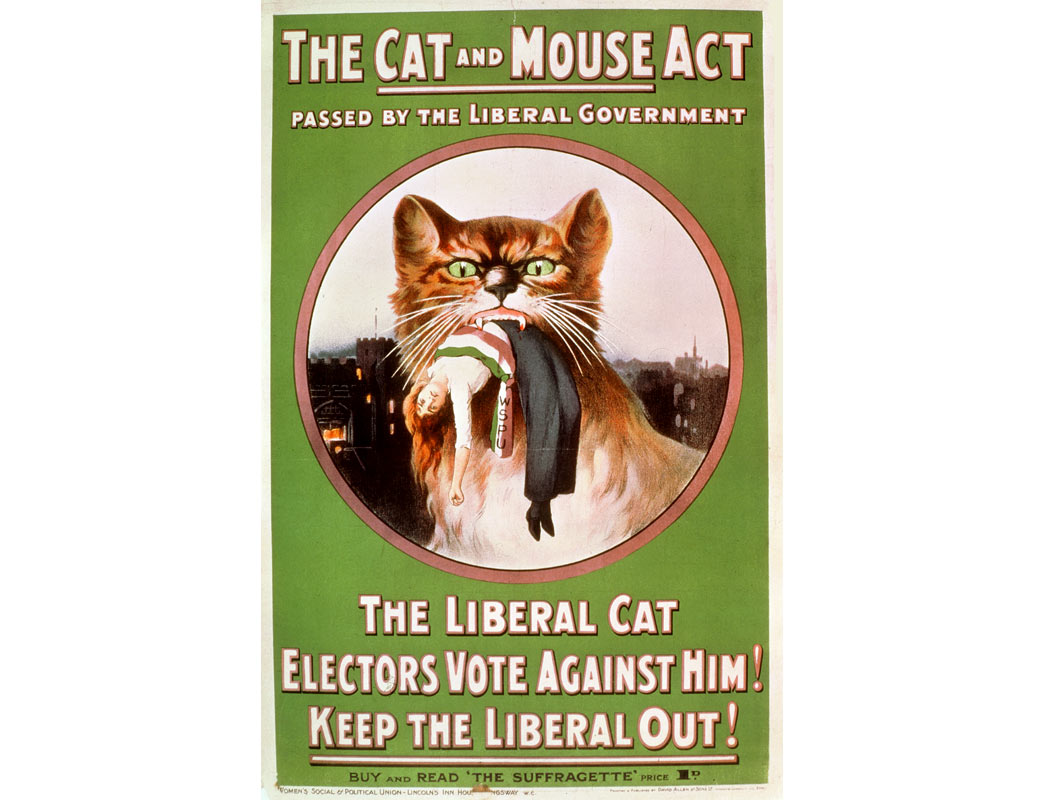 Driving across country (employing the still nascent automobile) Nell Richardson and Alice Burke, campaigned for women’s rights. Along the way they adopted a black kitten, dubbed him Saxon after the maker of the car, and made him their mascot. He became a living incarnation of the movement.