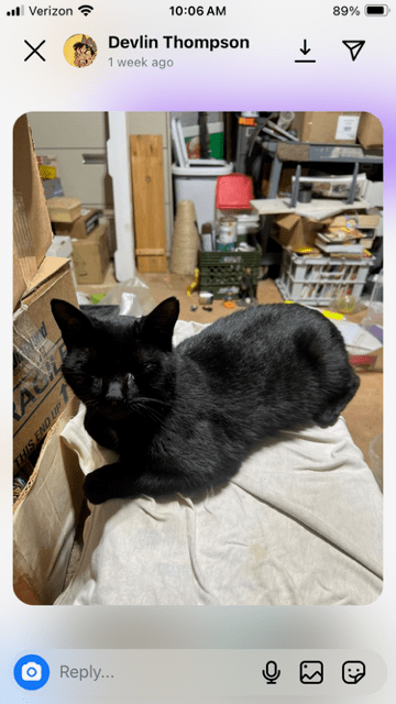 I’m probably skipping ahead a bit but Sadie and Dottie (@sadieanddottie), a tuxie and a white kit with cow spots, and who appear to live in Queens, brightened many a dark day when I realized a new post or story had been posted. These largely consist of these two cats growing up, but mostly doing cat stuff like watching birds and napping. Yes, I can watch my own cats do that (although Deitch Studio is situated a little high for birds out the window) and I do, but it turns out I like to watch other cats do it too.