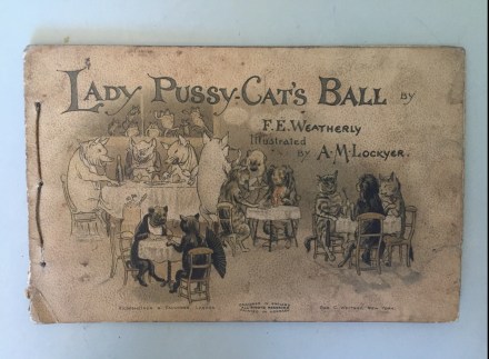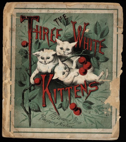 As far as I can tell this is a somewhat later version of a book by the same company (McLouglin Bros. of Springfield, Mass.) – from the 1890’s, also in linen but with a full color cover. Ours must be a bit later but there is no date. It seems like it could be a reprint from the teens. It has water damage what I thought was foxing but now I am thinking something may have actually splashed on it.