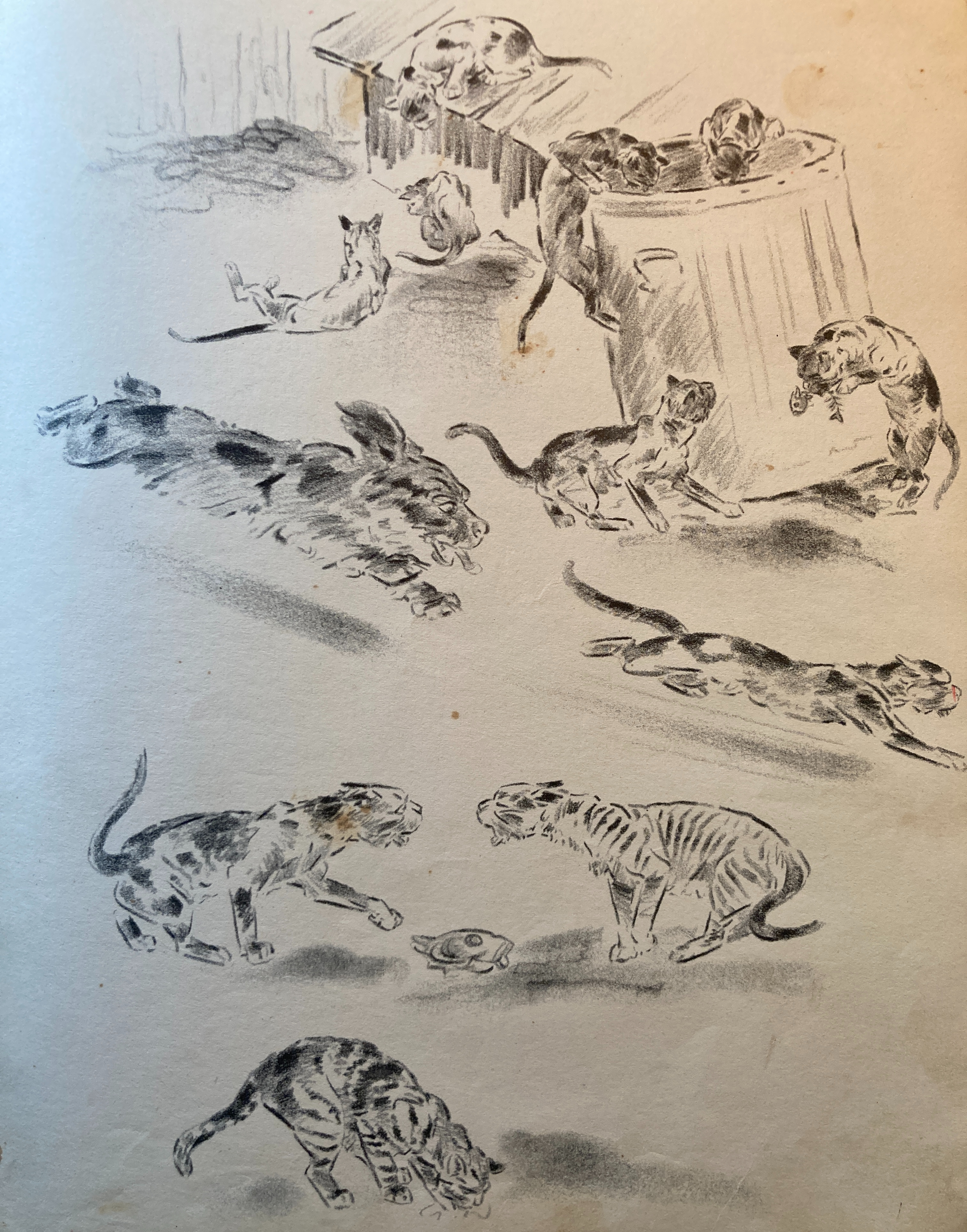 All this to say, I don’t want to give Four Footed Friends short shrift and will attempt to do it justice this morning. We picked it up at the 26th Street Flea market two weeks ago. The cover is in unfortunate shape and it is a bit off my usual beat, but Kim and I are both suckers for good illustrations and this has a few inside. I decided that for a few dollars I wouldn’t leave it there and I bought it along with a couple of photos which may be shared in a future post.