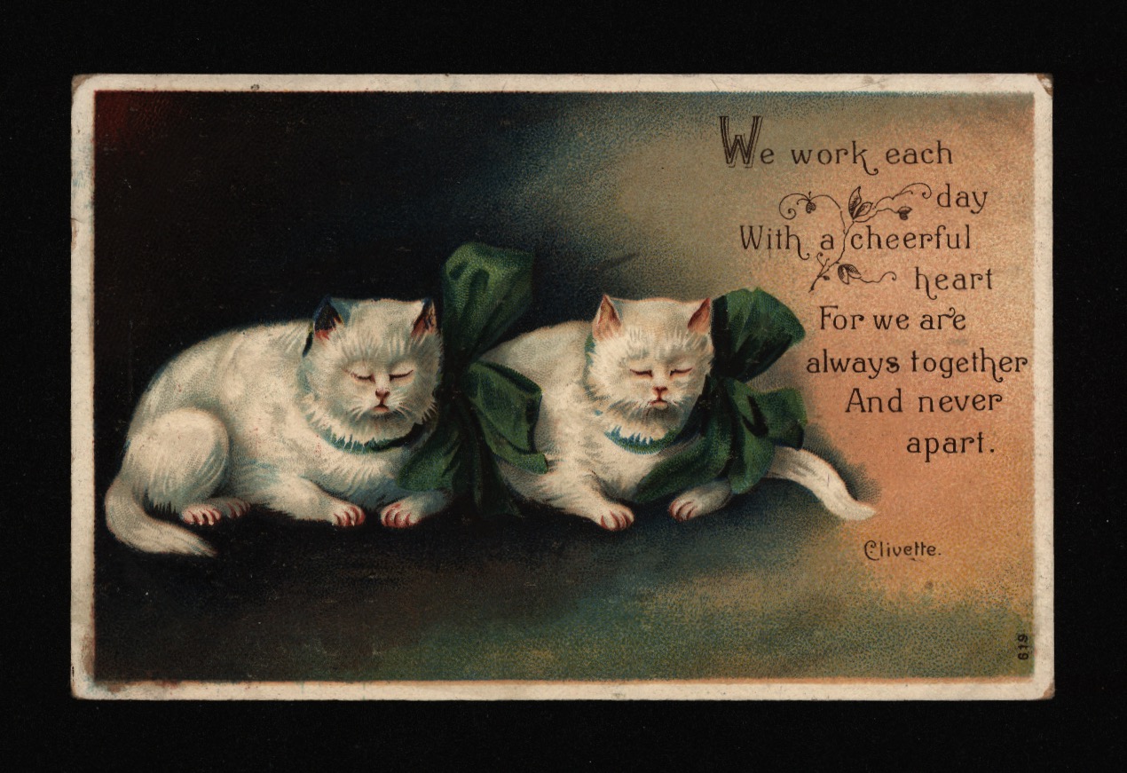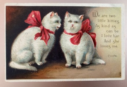 Although this card professes the affection between these felines they don’t look especially fond of each other frankly.