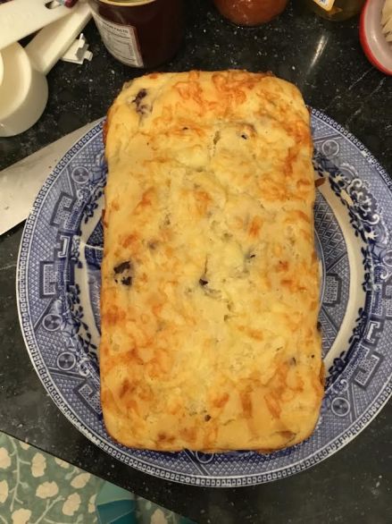 Meanwhile, this week the desire manifested itself in another recipe from The New York Times, this time for an olive cheese bread. Bread in general presents a problem for me as I have arthritis in my hands and kneading has been out of the question for decades already. I more experienced baker might be able to substitute some aspect of the Cuisinart for this activity. (If you are one of those folks and want to enlighten me, please do.) I have not figured it out. This sort of faux bread skips that step and requires only a firm hand with a spatula mixing.