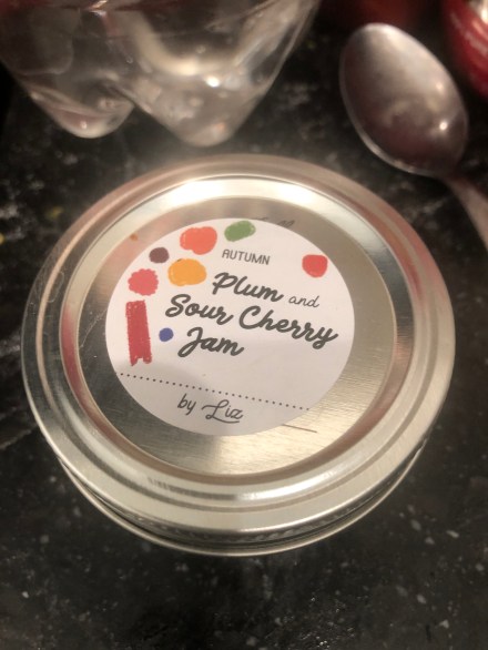 The other jar was plum and sour cherry jam. This one opened a Pandora’s box of taste memory because I have not had sour cherry jam or preserves since childhood. My grandmother used to make it each year – children and their spouses and the grandchildren were all tasked with a morning of picking the sour cherries off of an enormous tree in her yard. As I was a small child I assume my memory of it as being an enormous tree may be a bit exaggerated, but I do believe it was a mature and large specimen.