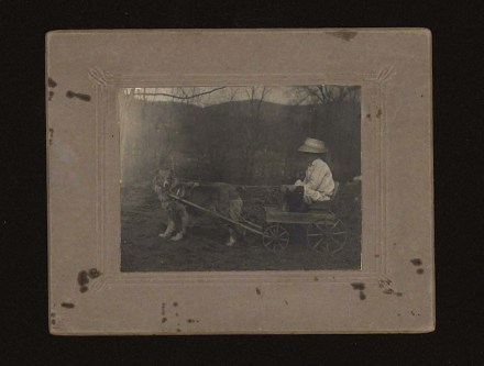 In the photo he presents a comical character with his trumpet, and his dog in his arms held like a baby. He looks at the dog and the pup looks out at the camera. I’m not sure but this photo may have been artificially put together from two – it doesn’t quite fit as a real image. I’m not sure I can entirely follow the concept of a dog act driven by trumpet playing. It sounds – loud!