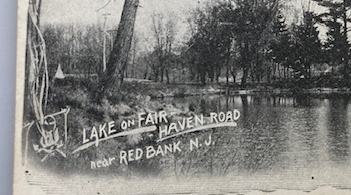 They have labeled this Lake on Fair Haven Road near Red Bank, NJ. That would make it a pond we call McCarter’s Pond today. However, I would argue that this is actually the water body where Fair Haven connects to Red Bank on River Road. I offer contemporary photos of both for consideration.