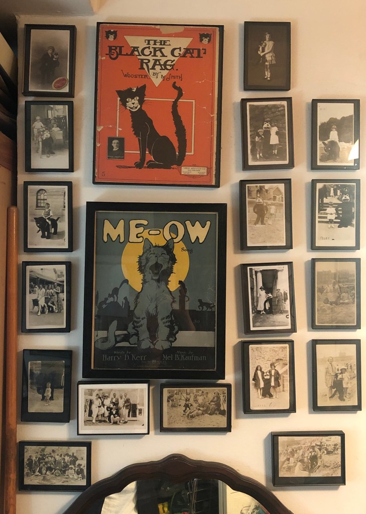 I leave you today with a snapshot of the Felix photo wall – there are a few additions pending and soon it will march over the ajoining top of the kitchen door and ultimately wander down the other side. (There is another, smaller annex of Felix photos, tintypes, in the hall near our bathroom.) Small apartment or not, I always say there’s always room for one more Felix photo.