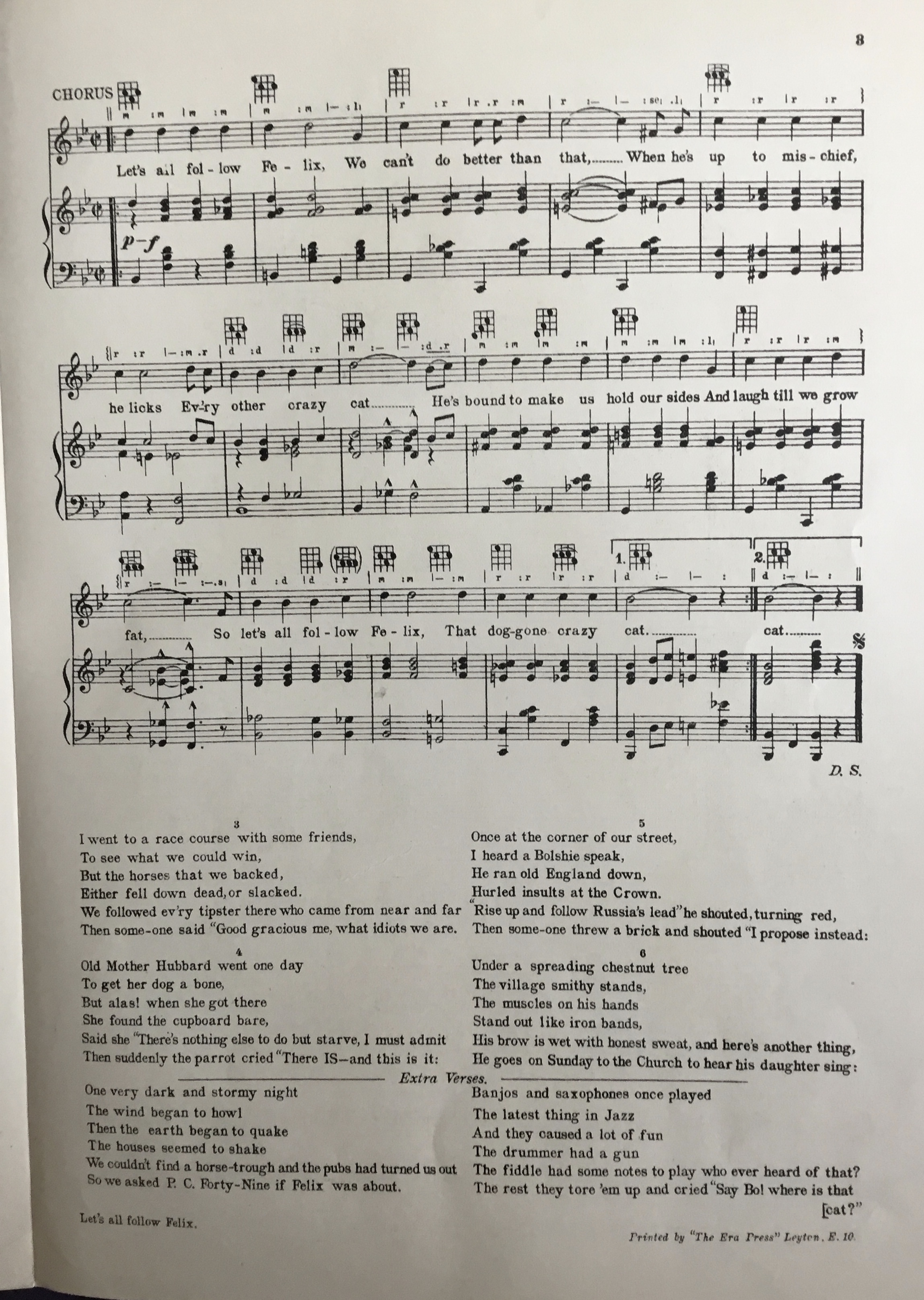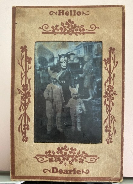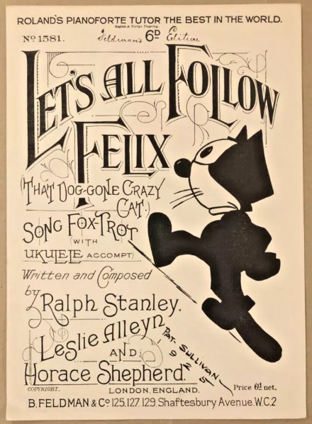 However, it is the shape of his face, head and rounded ears that are unusual. I’d almost think it was Steiff except that is not what the Steiff Felix looks like in the least. They seem to have had only one model and it is decidedly different. Most of the early off model Felix toys are pointy and doggy, definitely unlike this well rounded chap. It implies a different maker and I have no idea which that might have been. This Felix was well made – his head turns, although it must be done very gingerly now and every the extravagant bow makes me think he was a better made toy.