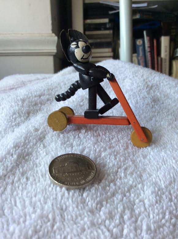 Tache d’encre tombée du pinceau de Patt Sullivan, il s’est étalé sous la forme d’un chat. Ne me demandez point pourquoi on le nomme Félix, nul ne le sait et lui il s’en moque. Personnage important il n’écoute que lui-même, agit à sa guise, suit sa fantaisie, sans avoir de compte à rendre à personne.