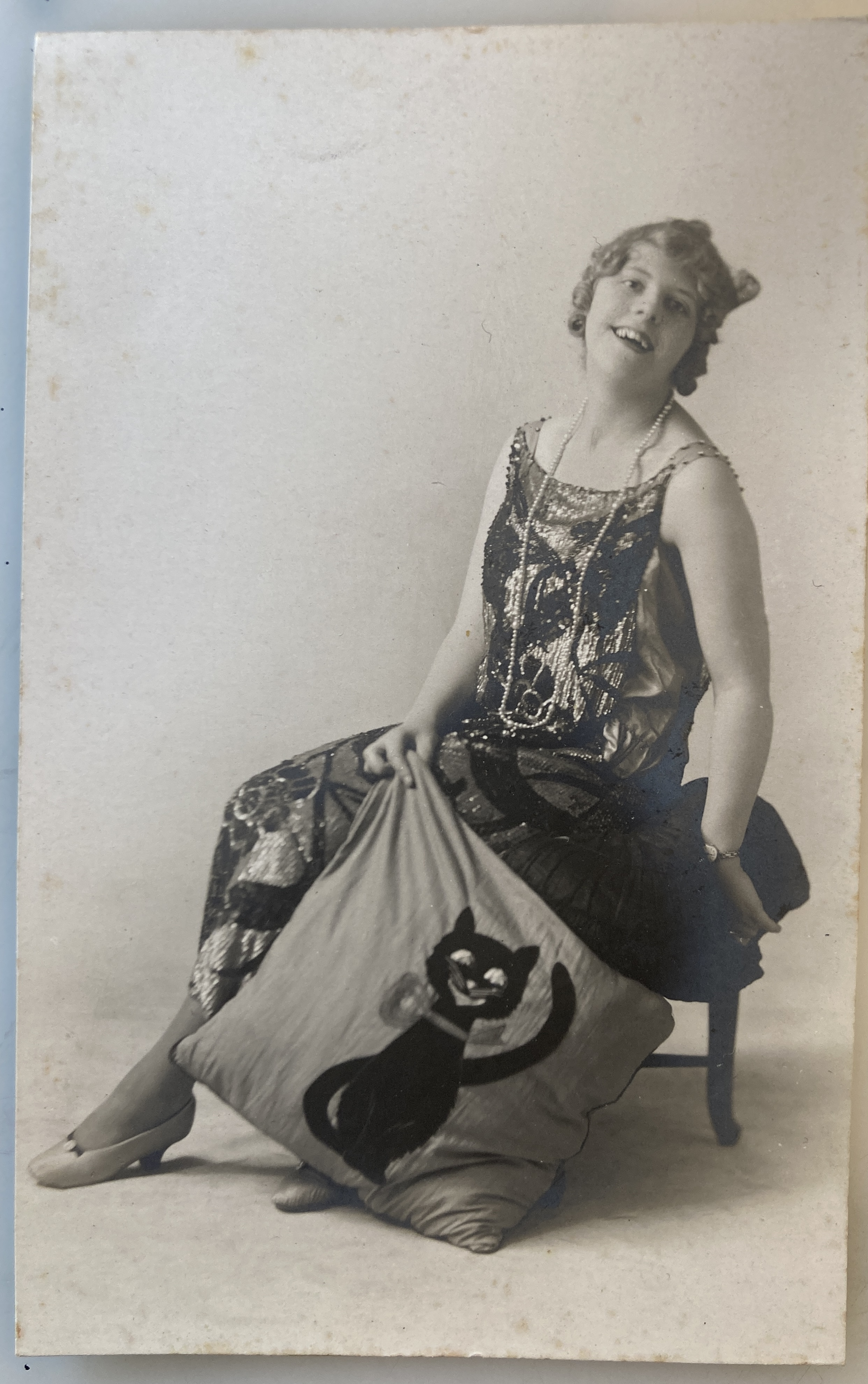 Pam’s Pictorama Post: While my timing may miss the mark for Halloween this year, the subject matter in a sense is pure Pictorama. The cat in question showed up from an auction house on Halloween night, having been purchased at an online auction a few months ago. While most auction houses I have encountered actually get items to me very quickly (one called Everything but the House sends out their packages with startling efficiency seeming to arrive within days) clearly some are more pokey. I purchased two things recently, at different auctions, and they have slowly meandered in a few months later. They are both welcome additions and today we start with this kitty – the other is a rather great future post.