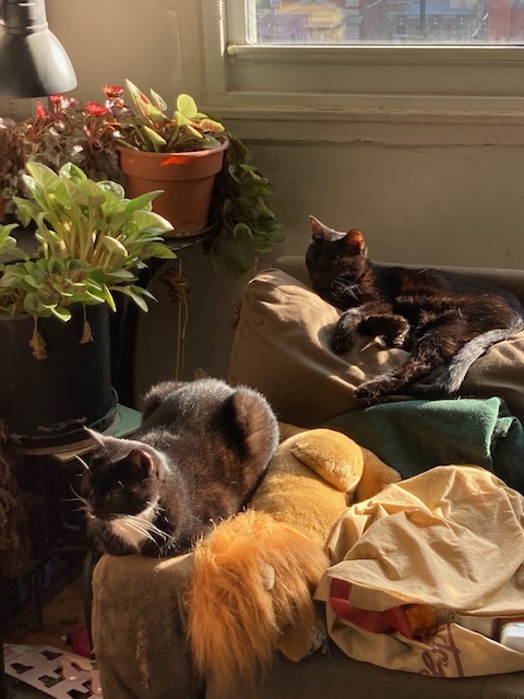 It has always been my office black cat if you will. (For many years I also kept the Happy Life wind-up toy, below, in my office because it has a calming and cheering effect on me. I was known to wind it up for staffers under distress, especially while at the Museum. I wrote a post about this soothing toy here and you can see it’s a clip of it wound up as well.) There has been occasional conversation about the scary black cat when he was introduced at various offices and why I have him and I usually just tell the story of his acquisition. However, over time for those staffers who have seen me on zoom from home they have been treated to a small view into the mighty black cat collection and it makes more sense. No one at the animal hospital has asked and I assume that has something to do with being an animal hospital? Or are they just not surprised to find me guarded by a scary black cat.