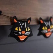 It is my intention to have him join another Halloween cat which has graced my office for many decades. I was working at the Met and I don’t remember how this couple knew that I collected black cat items, but they made a gift of it to me one day. Seems their son was a buyer working for Martha Stewart and was responsible for sourcing decorative items for the various holidays which would then be shown in the magazine and probably also sold under her brand. This cat had been a sample among the items he proposed and it was rejected. Somehow his parents saw it and grabbed it up for me.