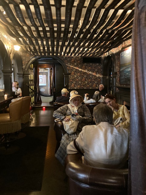 I have learned that hunt-the-slipper is a game where you pass a slipper (shoe perhaps in today’s parlance?) or small object and try to fool the person hunting about who has it. (I have finally found a good use for AI – it explained this to me.) And we are a bit appropriately huffy puffy here. We are spared too much gore for the mouse hunt with one cat discretely looking in a trap and we see only a mouse tail – although the expressions on the cats faces peering over are also pure Wain-ness with a fillip and dash of pure insanity.