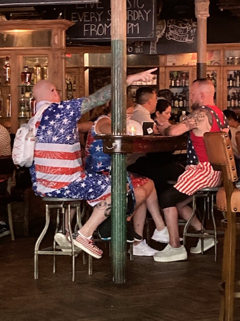Kissing kitties with voyeurs on the left and speeches on the right.