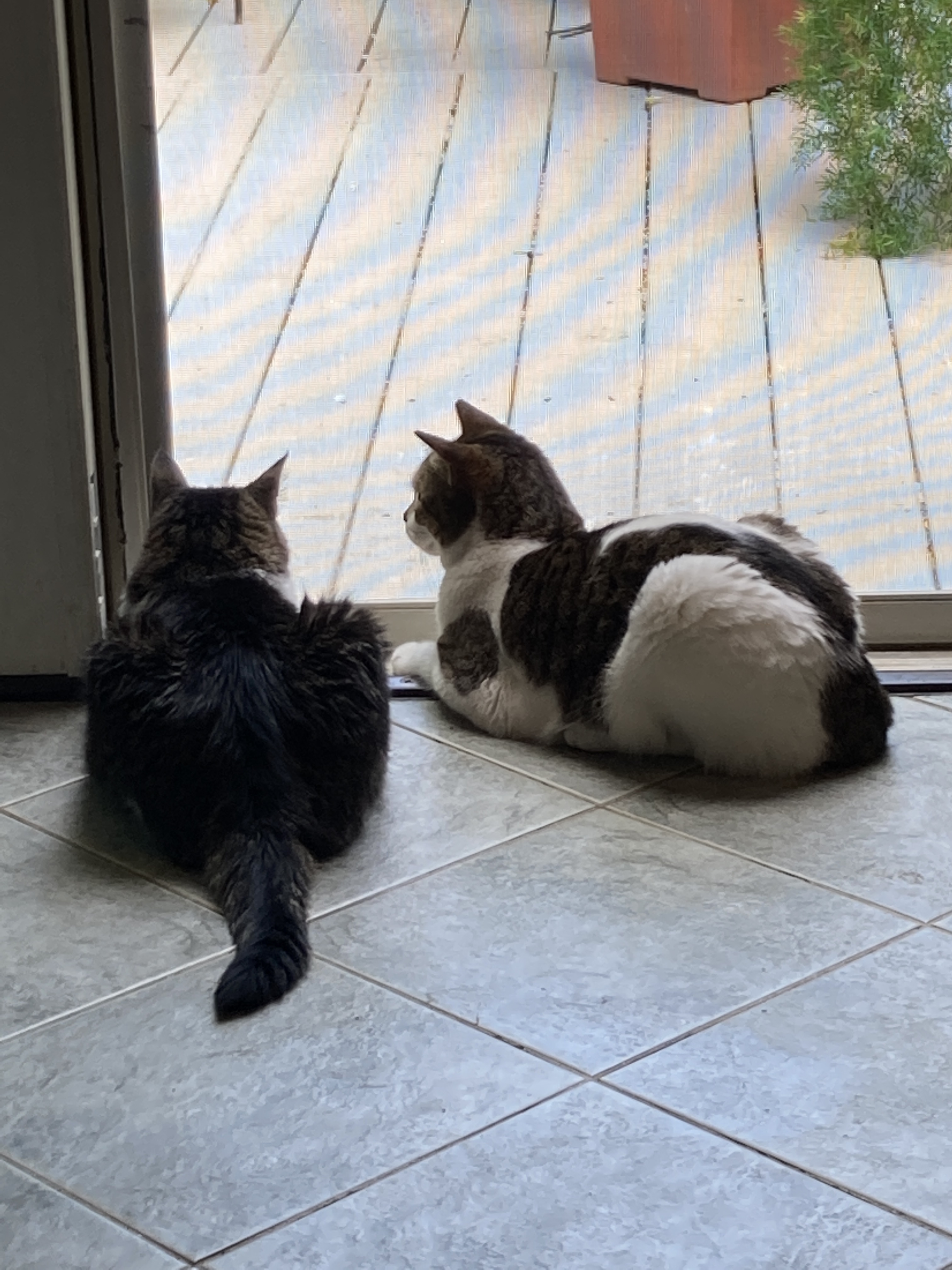 To be frank, mom’s cats are not enamored of me as a group. Beau, an enormous pitch black cat, allows me to pet him, but mom’s other rescues are skittish and generally not for petting which is disappointing. (I recently wrote about Stormy, cat of mystery, here.) I miss Cookie and Blackie’s affection when I am gone.