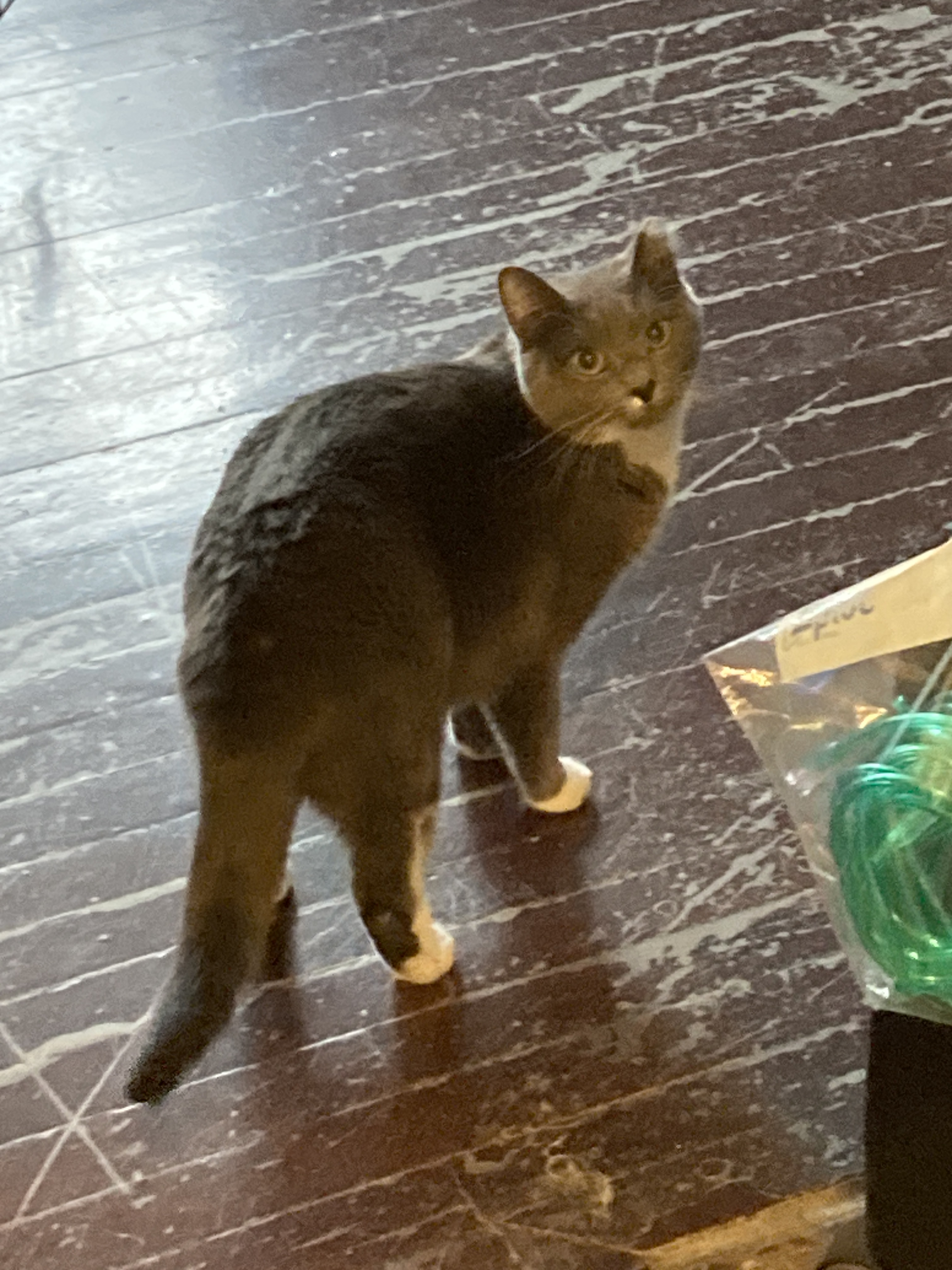 Milty, the eldest statesmen of cats in the house, is a grumpy fellow who complains liberally. He has a crush on one of the nurses and the friend who comes to fix our electronic devices, Larry.