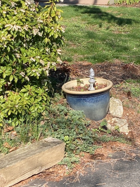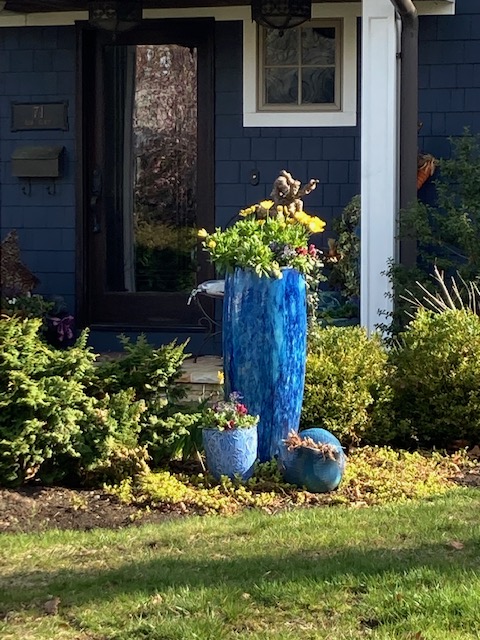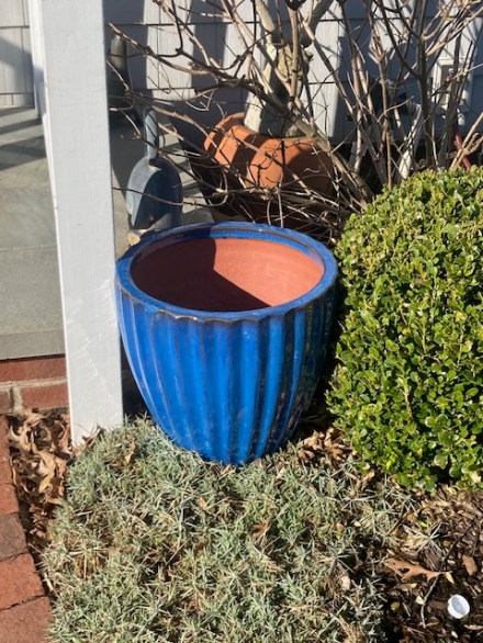 A too small blue for the front. Will hold herbs on the back deck instead.