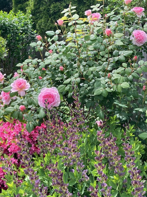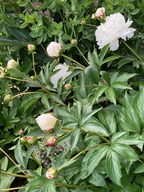 The peonies I gave her several years ago are already bursting as are her roses. Mom was good with roses in an effortless way. Did she just know good spots for them? I never remember her fussing over them especially. My nascent herb garden and tomato plants are slowly gaining traction. A dahlia is shooting up in a planter. Unclear though if I have inherited the green thumb or just having some beginners luck as well as guidance from gifted gardening friends.