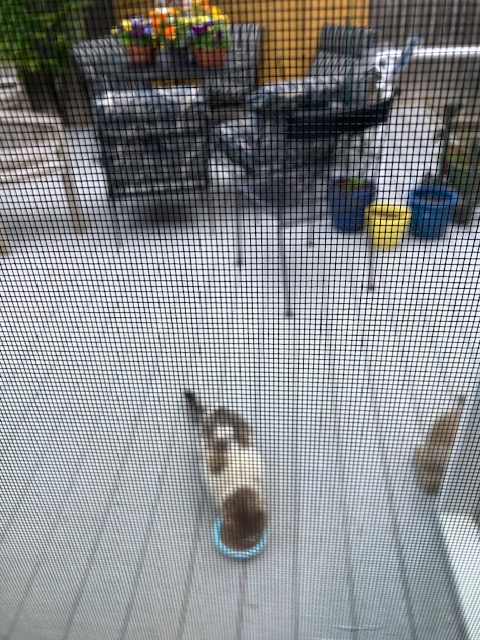 Cookie the morning of window removal – deeply uneasy and unsure why.