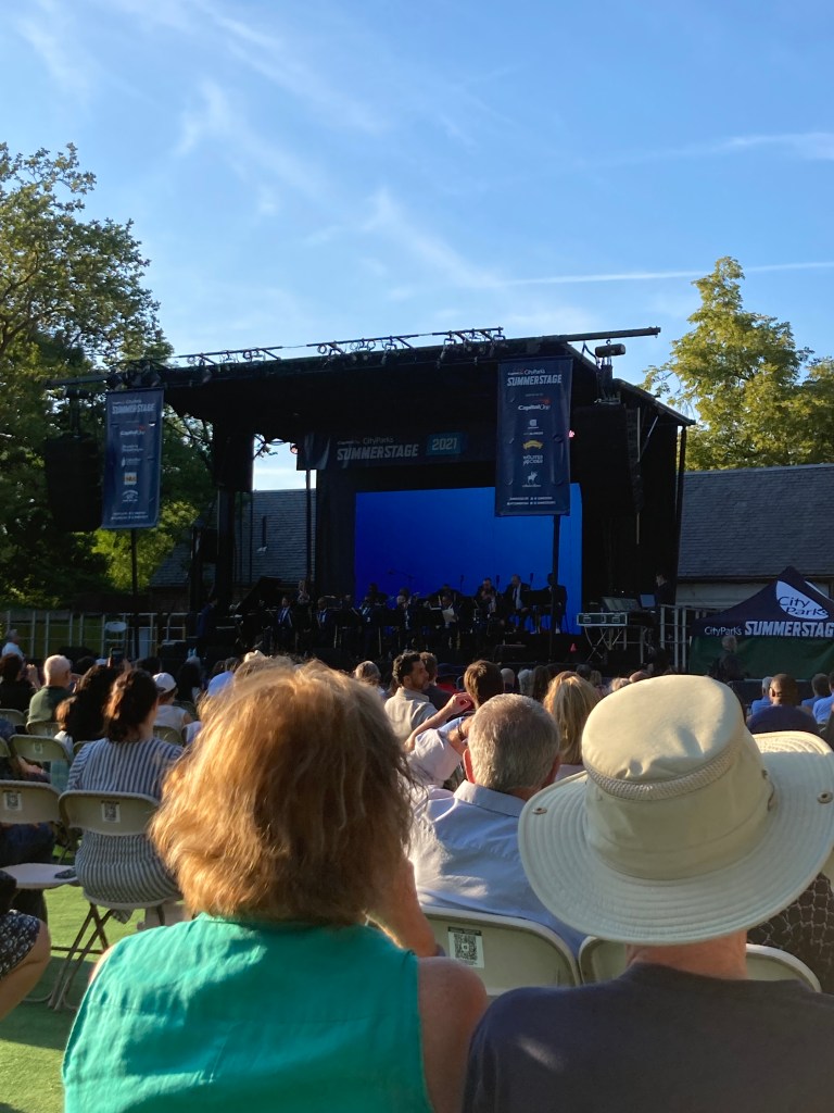 The timing was good because shortly after I headed over to Central Park where the Jazz at Lincoln Center Orchestra was opening Summer Stage. Many of my colleagues from across the organization had booked tickets and it became an impromptu reunion – complete with hugging and elbow bumps for those not ready to hug. (There’s a lot of hugging in jazz.) The outdoors meant everyone was pretty comfortable being without a mask, eating and drinking. I can’t say the year melted away, but it was like salve on a wound.