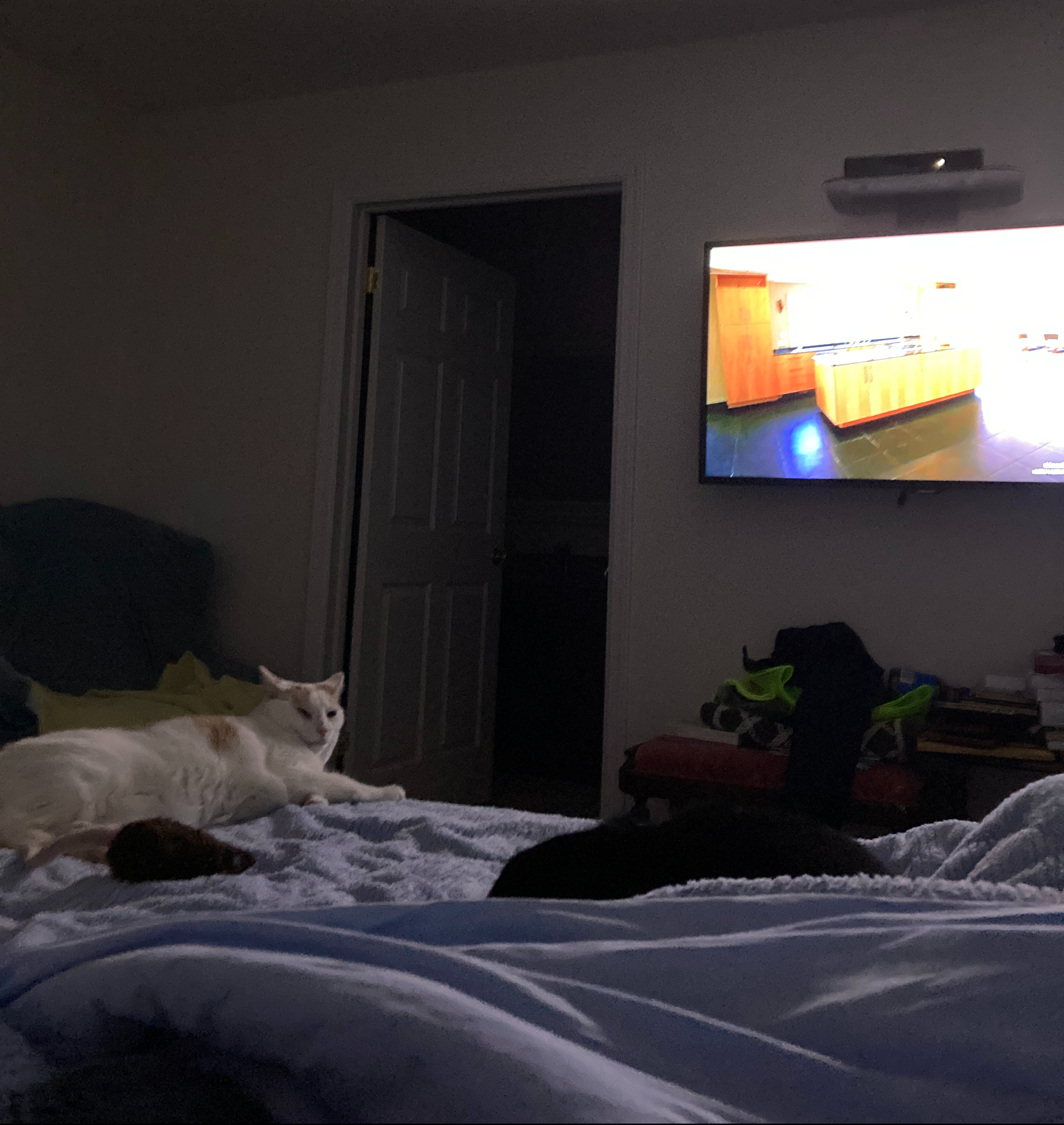 Blackie has wiled most of his days away in our bedroom when not hunting up Cookie (who resides in Kim’s studio upstairs) and eating her food. He’s also gotten into numerous tussles with Beau, the head of cats here and fluffed himself up into a righteously puffy Halloween-esque fellow. I am trying to resolve the problem with an extra can of food in the late afternoon. It might be working.