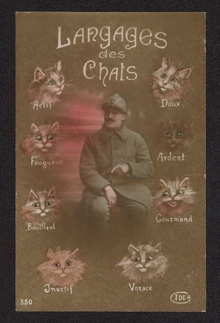 Referred to sometimes as Mainzer Cats, this card is part of a large series of postcards produced by the Alfred Mainzer company of Long Island City, New York. (A local business with Long Island City being just across the East River from where I sit right this moment.) The company was in business from the 1940’s through the 1960’s, however the artist responsible for these cards was a Swiss artist, Eugen Hartung (or Hurtong) (1897-1973), who executed the series. So the moniker Mainzer Cats seems a bit unfair in retrospect – these are actually Hartung kitties.