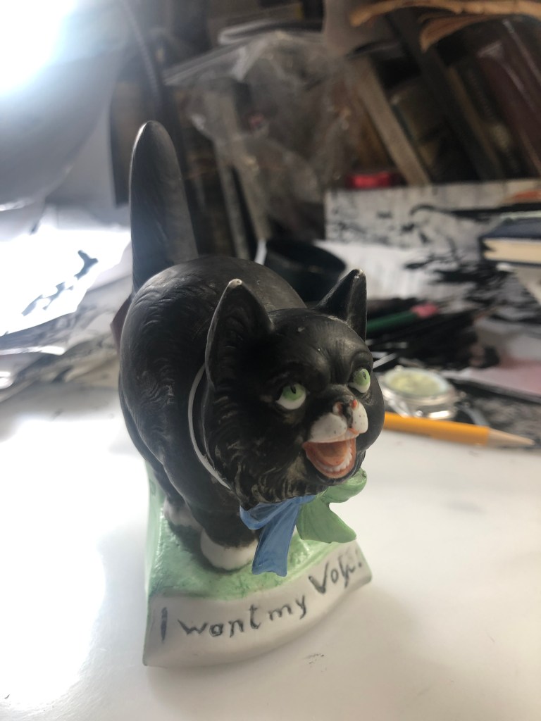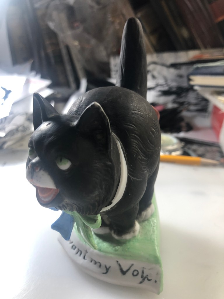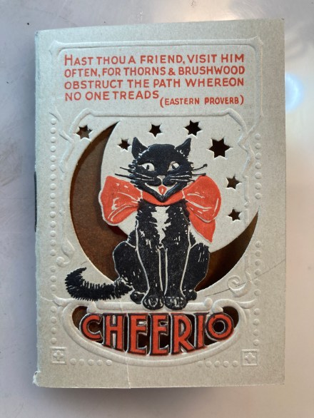This year, as declared in a post last week, I went on a bit of a vintage Valentine’s Day binge and while looking I came across today’s card which seemed perfect for me to align and honor my black cat, Valentine’s Day and birthday interests.