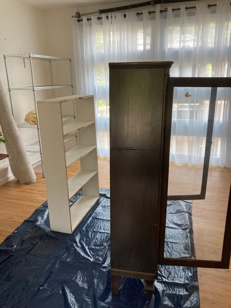 Meanwhile, a good friend answered my appeal for bookcases and dug not one but two out of her basement. A few days have been devoted to giving one a new coat of paint and cleaning up the wood and glass on the other. It has been decades since I have done this kind of work on furniture; I think I was still a kid and doing it under my mom’s supervision. I suspect my muscles will tell me all about it tomorrow. The glass front case is a particular dandy though. I am tempted to use it for toys although it sees better suited for books.